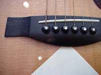 Bridge reglues are common for instruments that have been improperly stored, or for lower priced instruments in which the bridge was improperly attached to the body. The bridge will initially pull away at the rear (away from the strings) as the string tension essentially pulls the bridge off the body. If left unrepaired, the bridge could completely pull off of the body, taking large sections of the top with it. If a small gap is visible between the bridge and body, try slipping a thin piece of paper between the joint to determine how far the bridge has pulled away from the top.