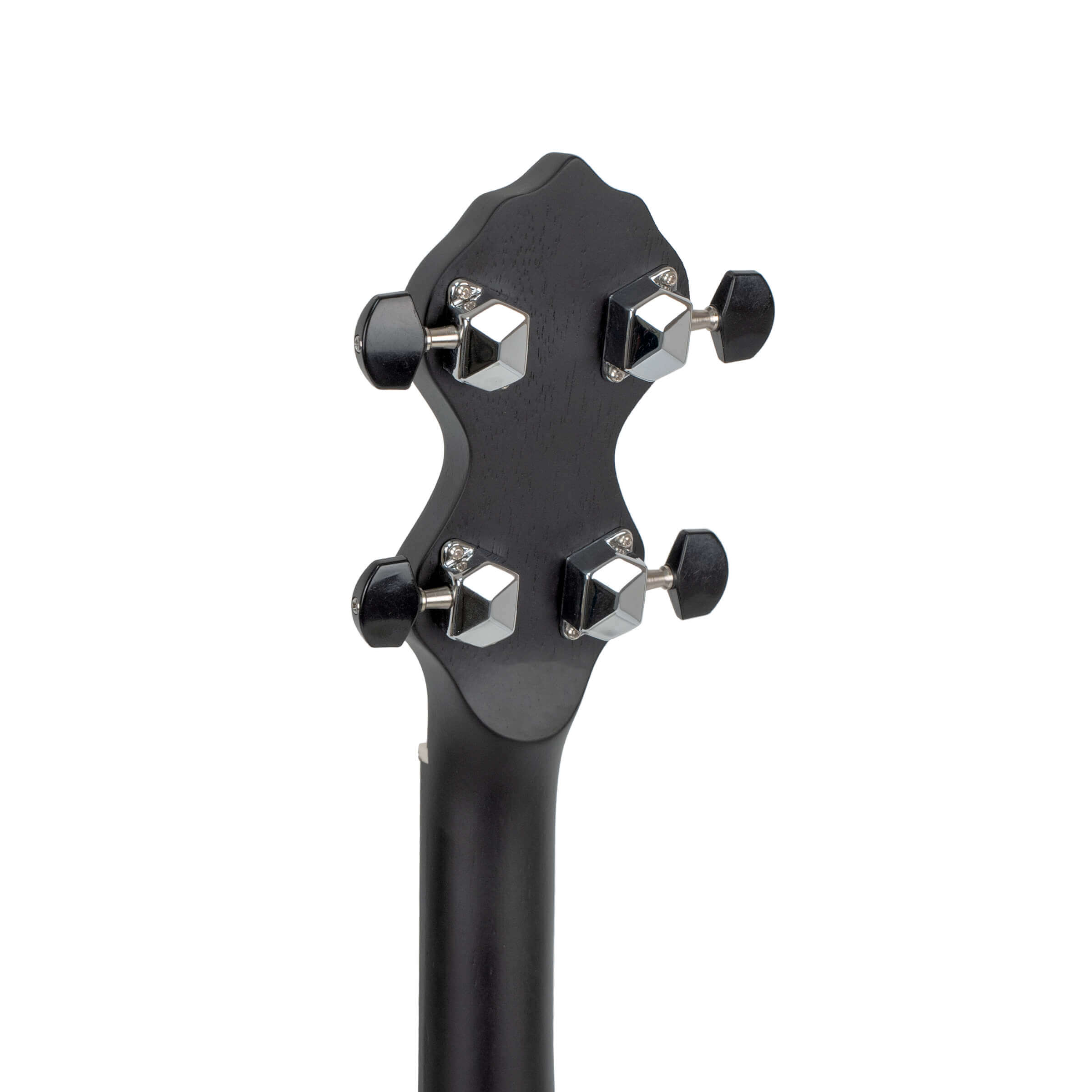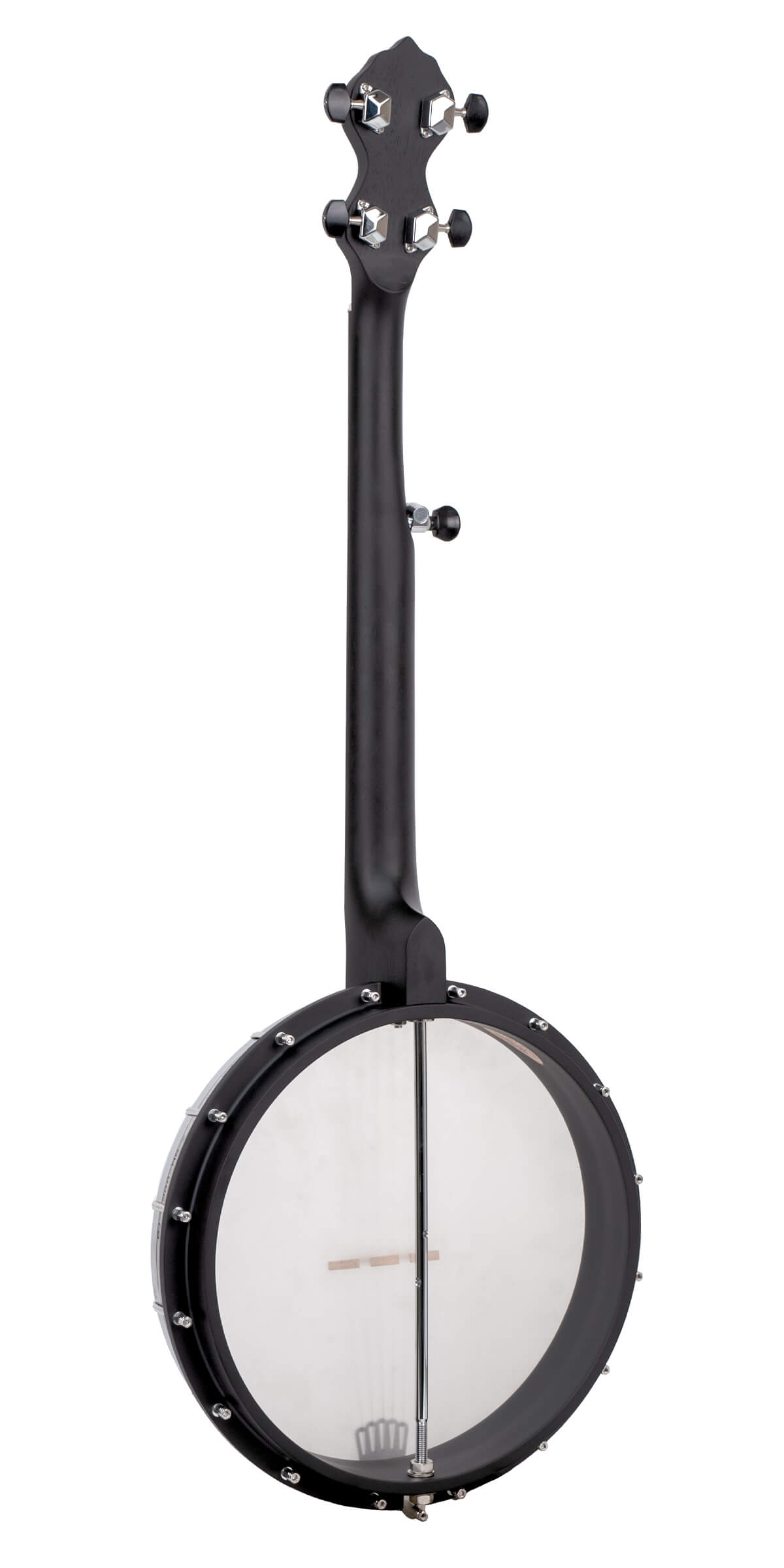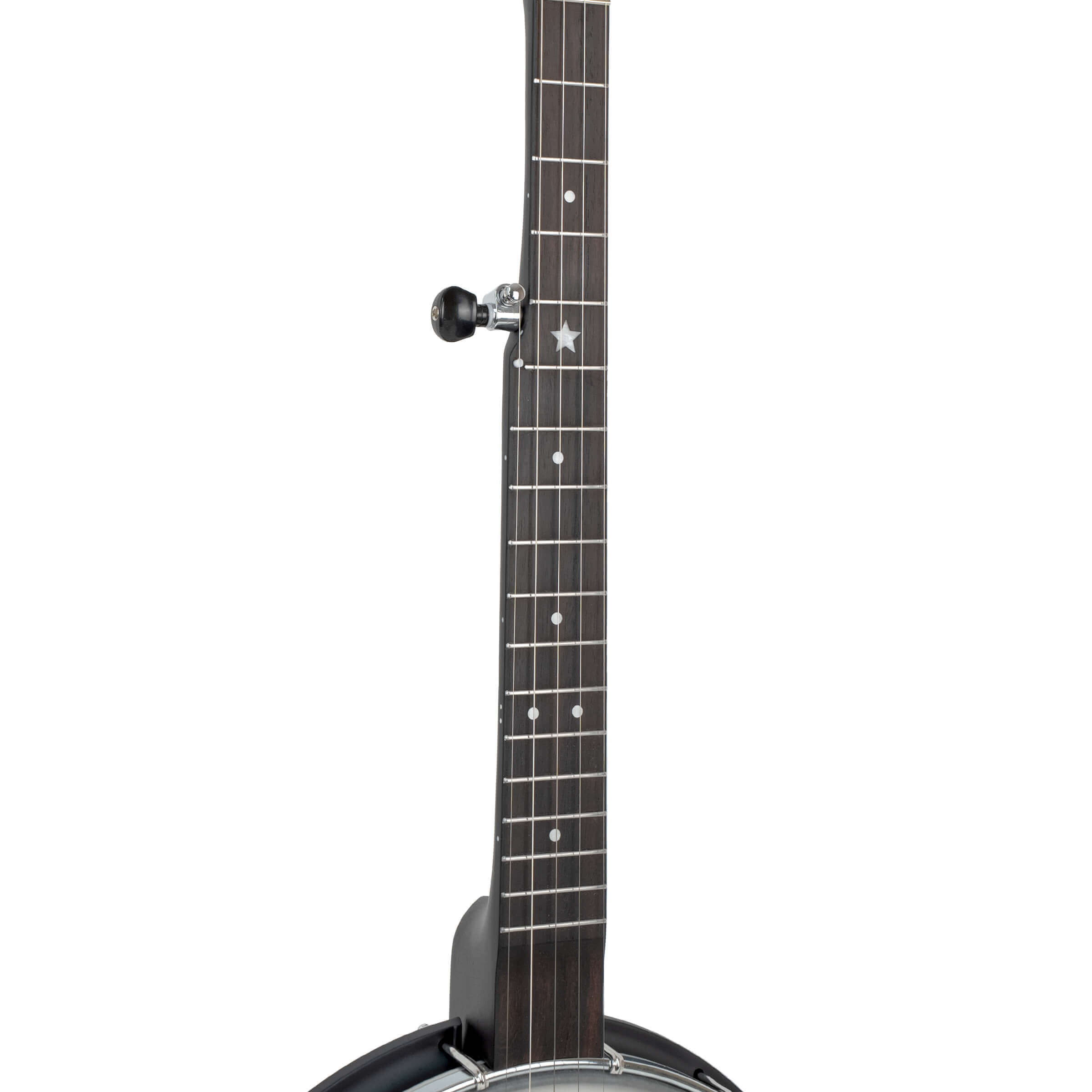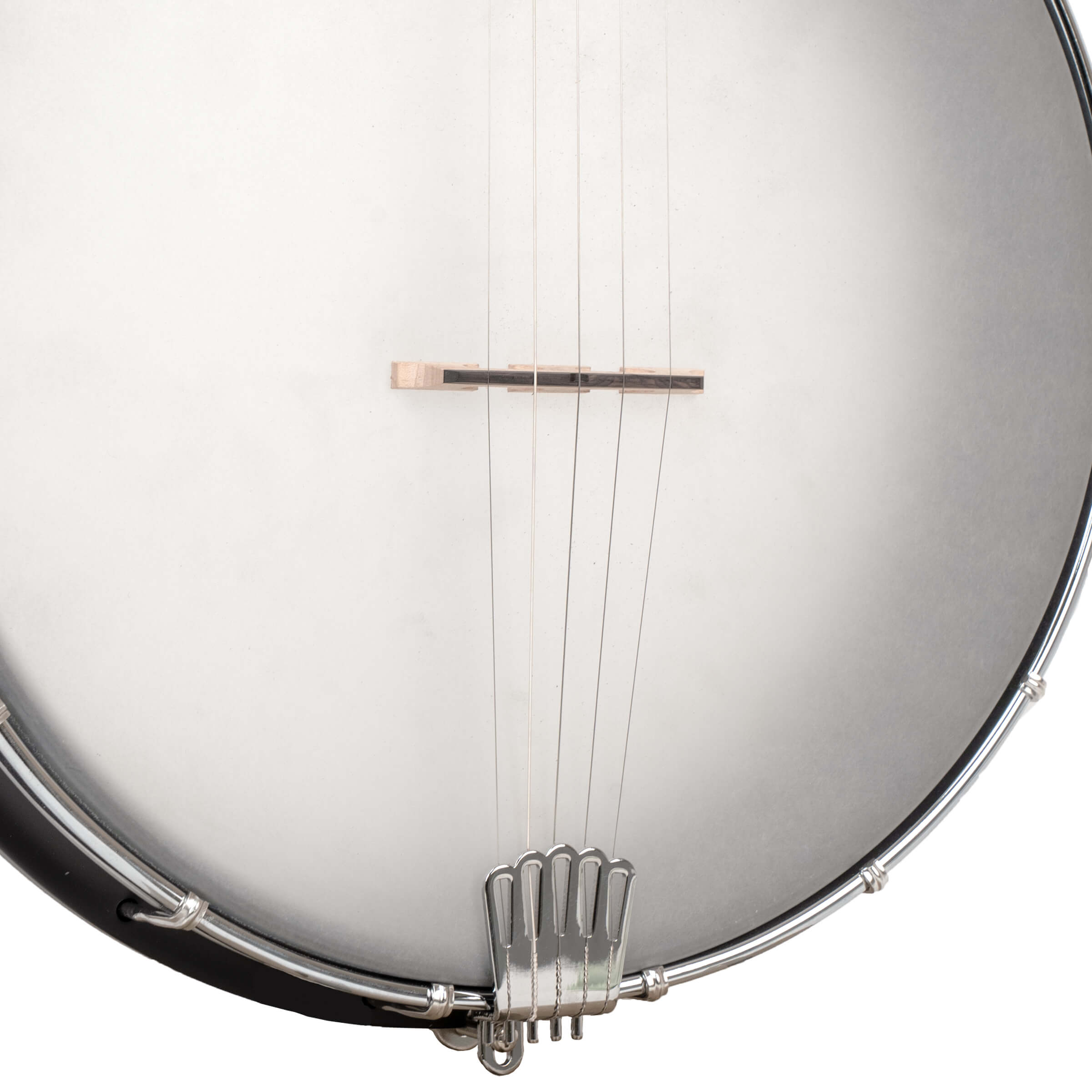 The Gold Tone AC-12 is the latest addition to our ever-more complete lineup of clawhammer banjos. It has everything the new old-time banjo player could want: a generous 1 7/16″ string nut width (our ZeroGlide nut comes standard), a separate rosewood fretboard on a nato mahogany neck with frailing scoop, an adjustable two-way truss rod with peghead-located adjuster, a durable and great-sounding 12-inch composite rim with coordinator rod for fine action adjustment, a good-looking and functional tailpiece for easy string-changes and proper down-pressure. Ultra-light at just FIVE POUNDS (!!!), this featherweight can save your back while you trudge around the festival grounds. All this and a serviceable gig bag too!