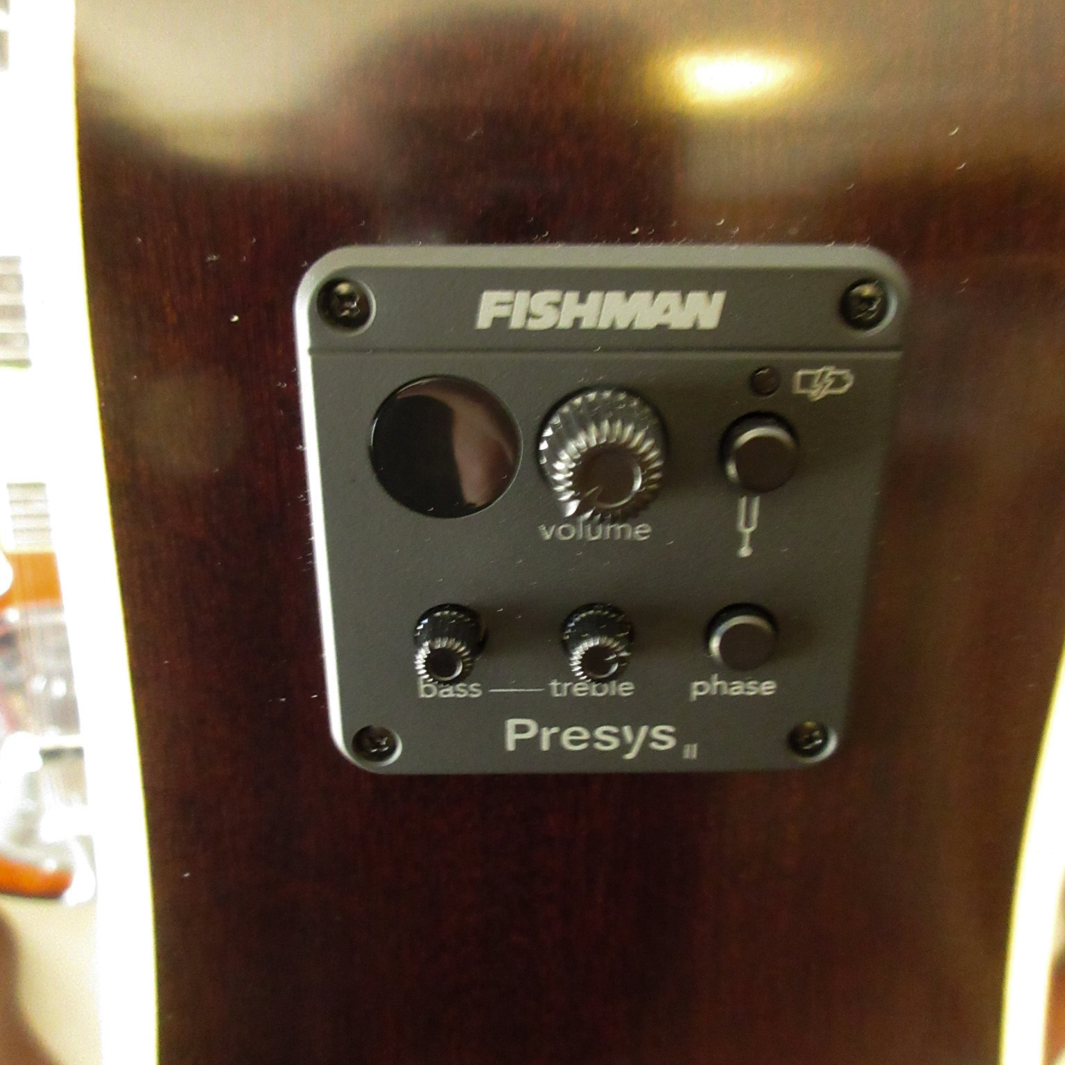 - Electronics: Fishman Sonicore (under-saddle pickup) with Presys II preamp (Volume, Bass, Treble, Phase, Tuner)