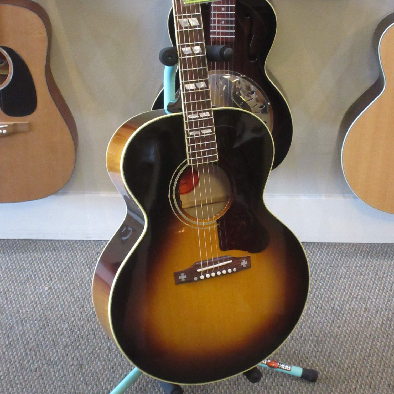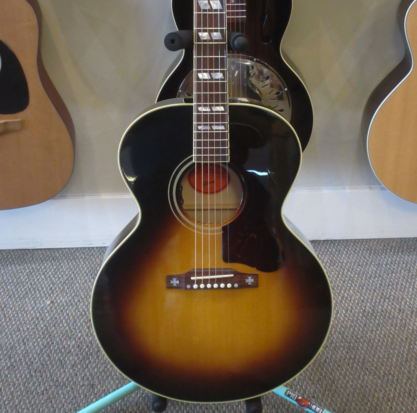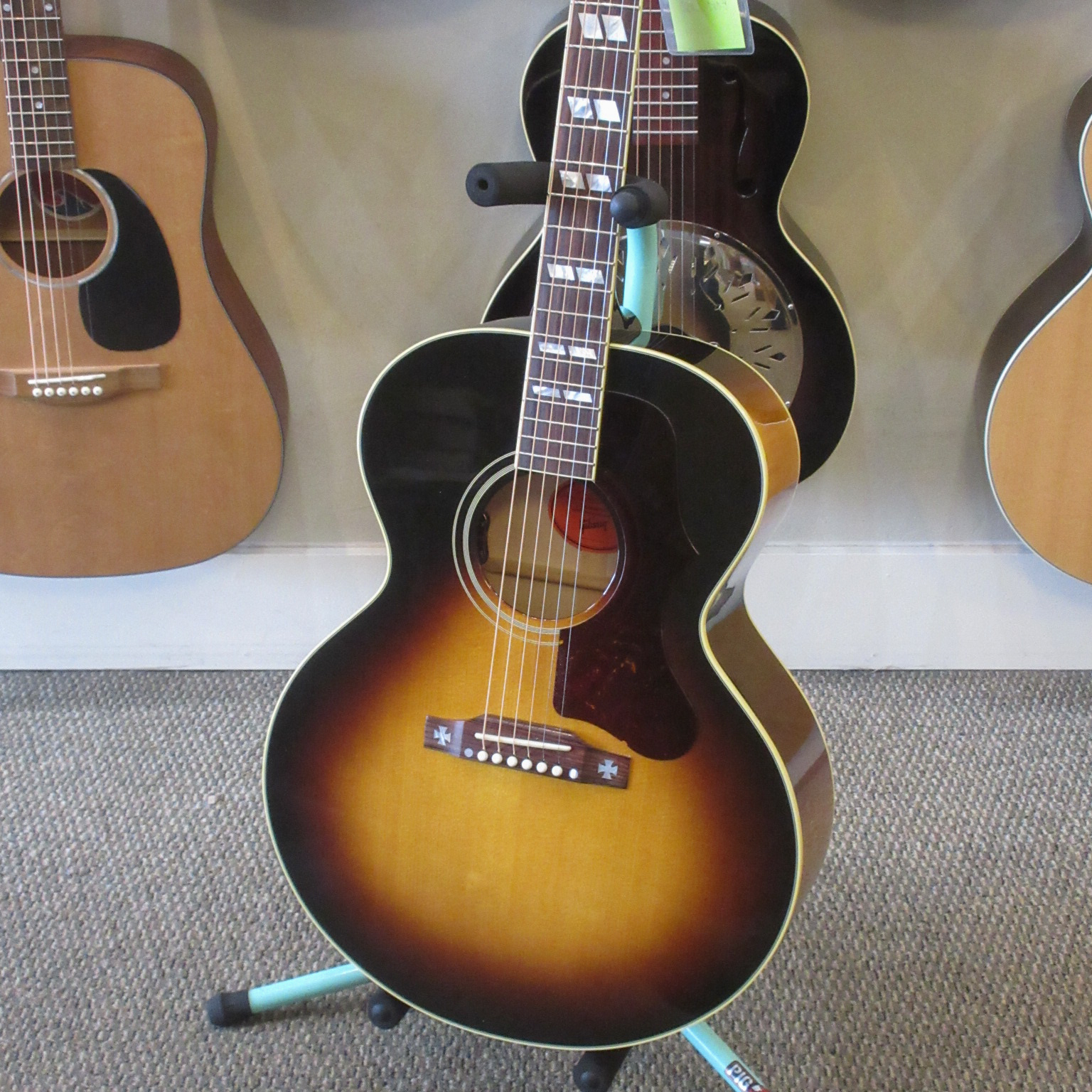 The Gibson J-185 is a legendary “small-body” jumbo acoustic guitar first introduced in 1951. Designed as a more compact and playable alternative to the massive SJ-200, it is highly regarded for its exceptional tonal balance across the low, mid, and high frequencies. Positioned between the SJ-200 and smaller models, it features a Sitka spruce top, flame maple back and sides, and a 24.75″ scale length. The standard modern version captures the early 50s spirit. It features a solid Sitka spruce top, flame maple back and sides, and an LR Baggs VTC pickup system for stage use. This is a lightly used guitar. It has a little light wear that didn’t show up well in photos. It’s all small, hard to see stuff that you need to hunt for. The guitar plays and sounds great acoustically or plugged in. It is in very good+ condition and comes with it’s original hard case.