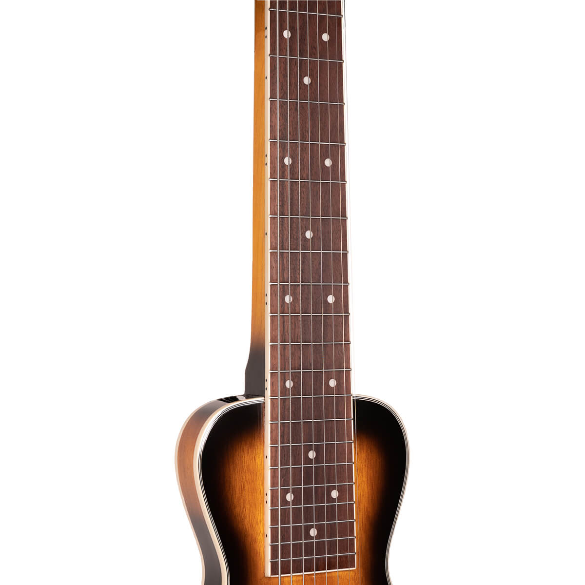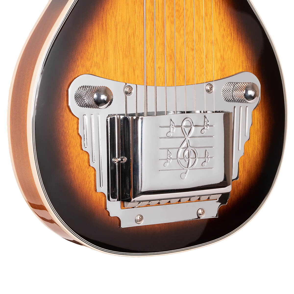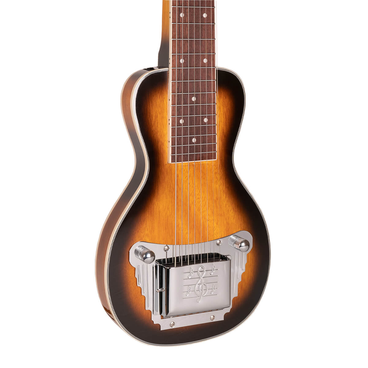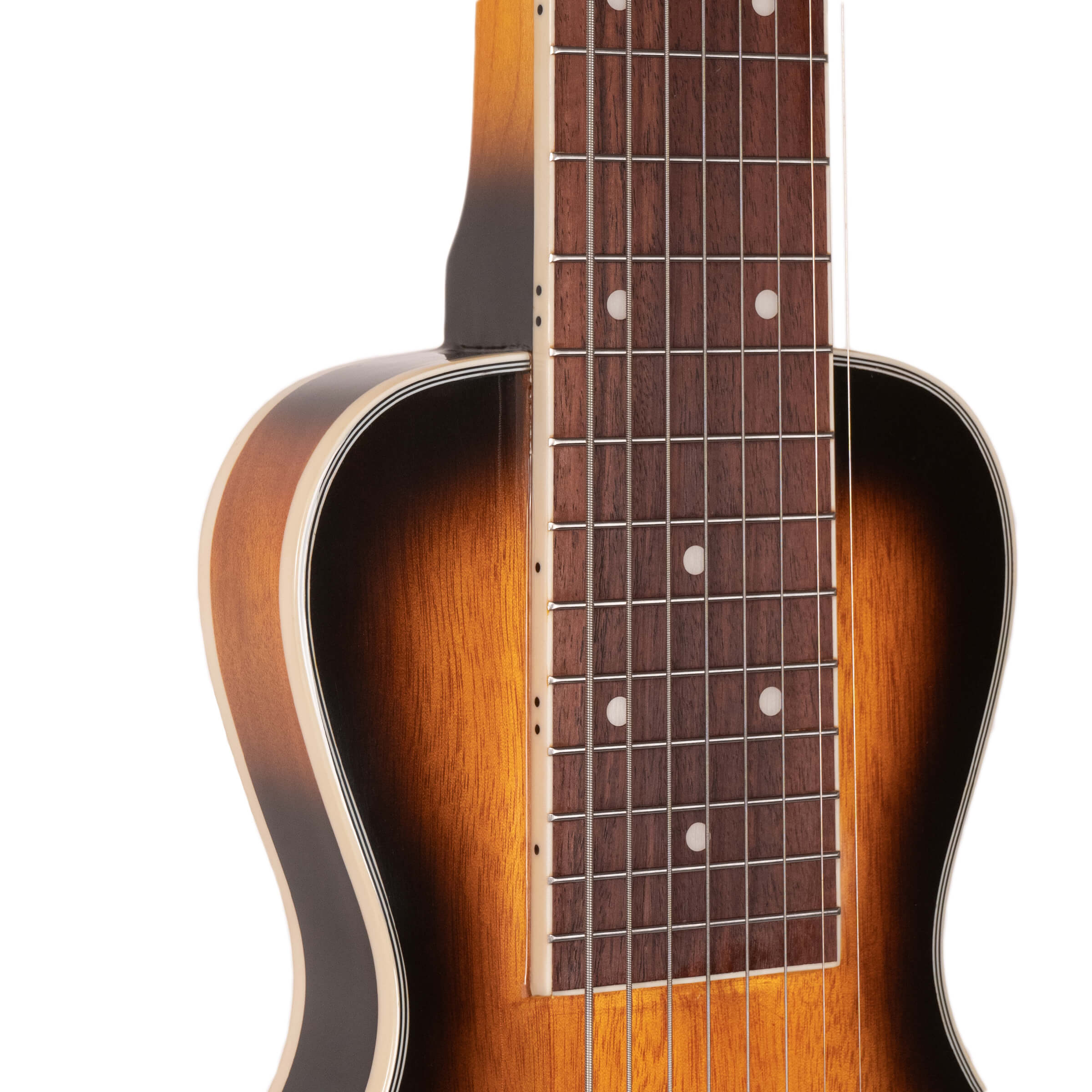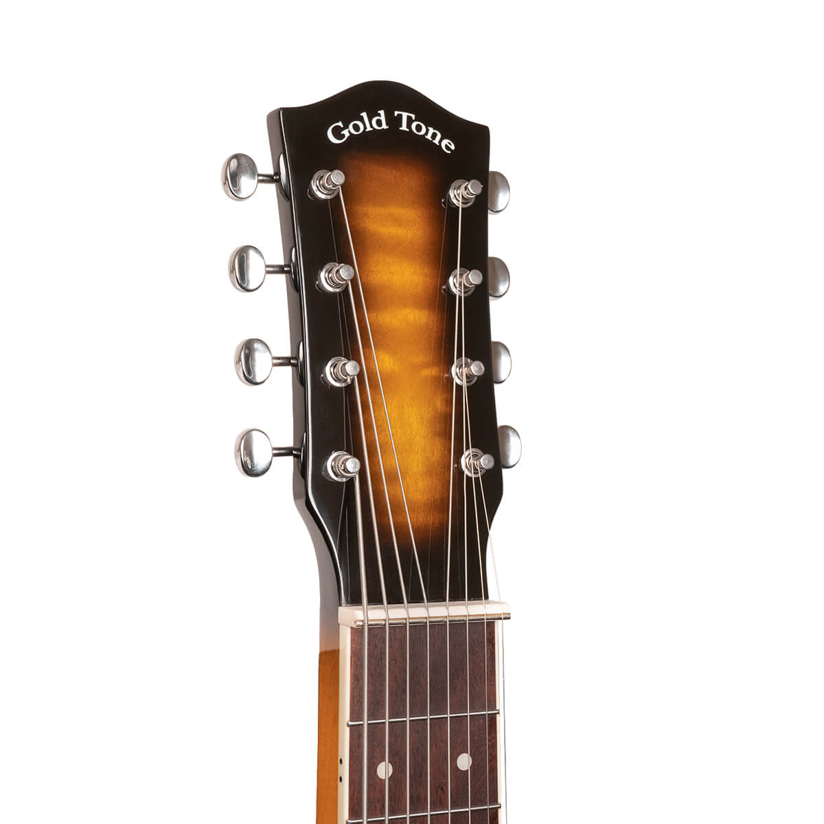 The Gold Tone LS-8 evokes the Oahu Tonemaster, one of the most revered lap steels of the 1950s. Our version is so close to the original that owners of Oahu instruments buy LS-8 pickups and hardware from us for use in the restoration of their prized guitars. The LS-8 is set up for F6 tuning (DFACDFAC) but other tunings can be accommodated by installing strings that are gauged for those tunings. Available as left-handed model.