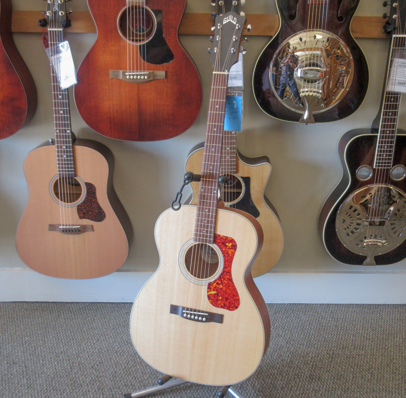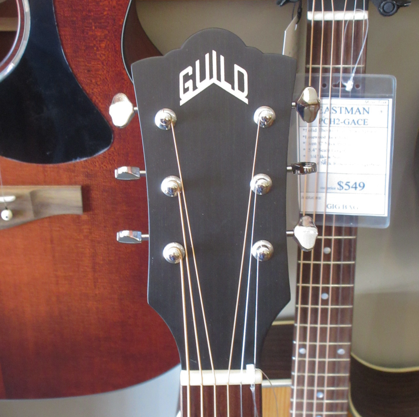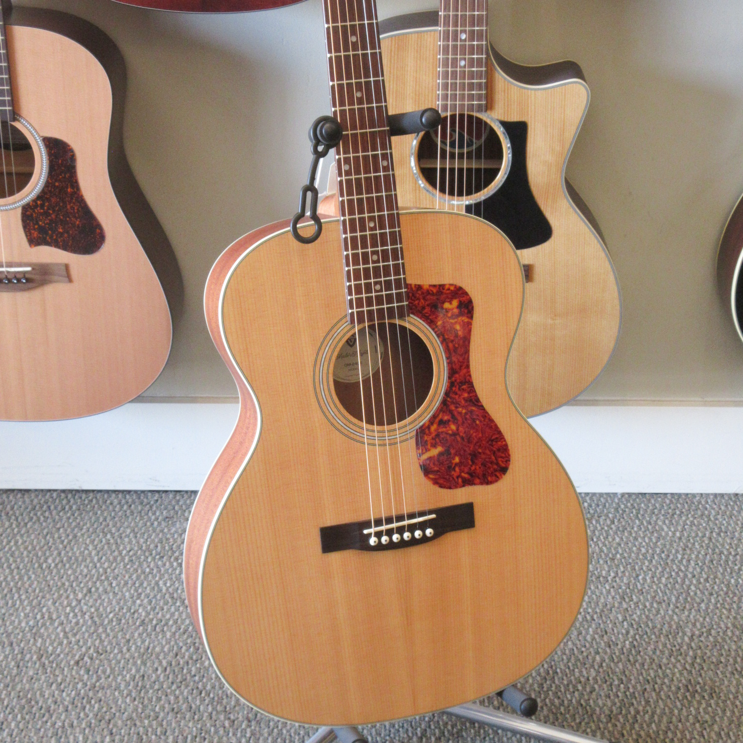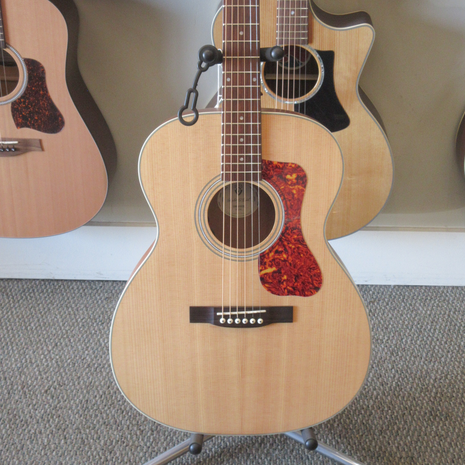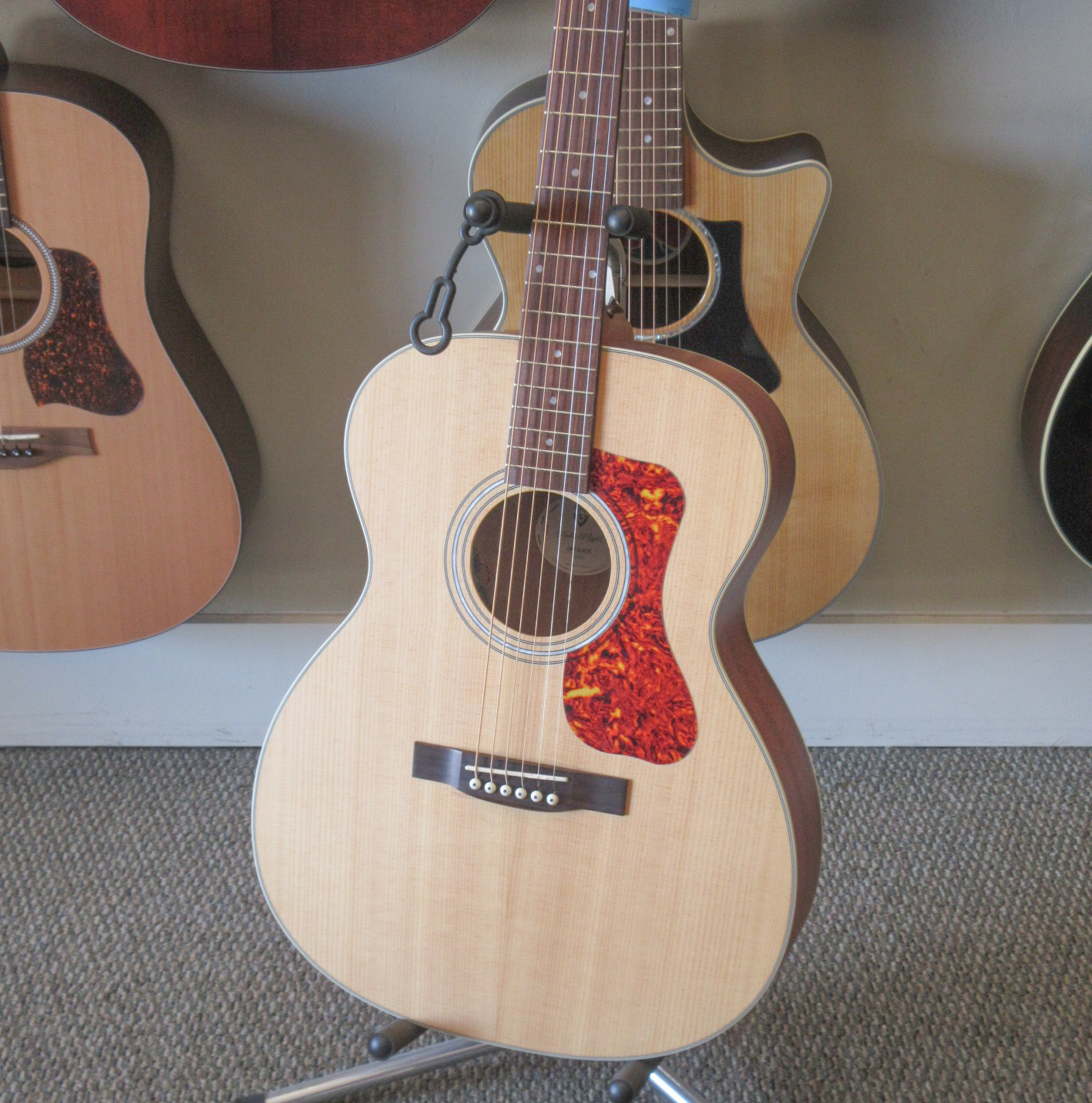 This mid-sized orchestra shaped acoustic is equally suited for strumming and fingerpicking, and produces a sweet, balanced tone. The perfect choice for the versatile musician, the OM-240E features a solid Sitka spruce top, mahogany sides, and arched mahogany back. Guild’s signature arched back design allows for great volume and projection, long sustain, and a lush, full sound. The OM-240E features Guild’s Fishman-designed AP-1 electronics, a pau ferro fingerboard and bridge, bone nut and saddle, pearloid rosette, period-correct tortoiseshell pickguard, and a matte polyurethane finish. This is a lightly used guitar. It has a little light wear and that’s it. We set it up and put on new strings. It plays easily and has a fun tone. It is in very good condition and comes with a hard case.