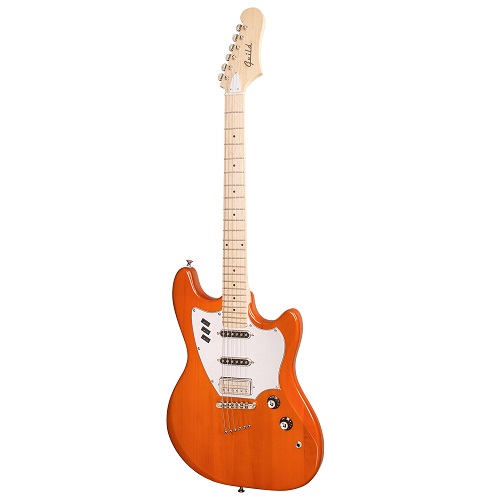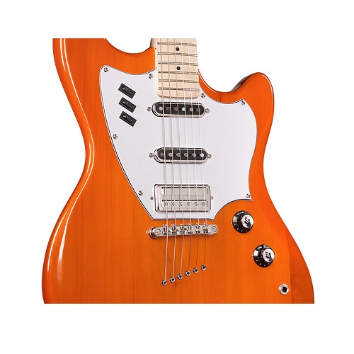 Influenced by the iconic heritage and eccentric shapes of vintage Guilds, the all-new Guild Surfliner compliments the brand lineage by combining classic styling with modern features in an offset, solid-body electric. The Surfliner features a fast-playing satin-finished neck and a gloss body. Sleek, contoured lines shape the asymmetric Poplar body, while a satin-finished C-shaped neck provides smooth playing and tactile familiarity. Evenly balanced and shaped to fit comfortably at any strap height. Featuring a neck-to-body joint at the 17th fret.