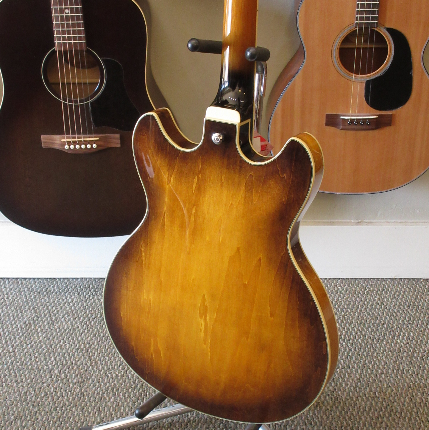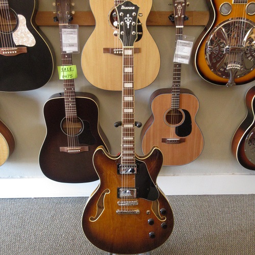 The AS73 is an Artcore series hollow body electric guitar model introduced by Ibanez in 2002. It was originally produced in China, but since 2016 production has moved to Indonesia. This guitar sounds and plays great! We did some light set up to it and put new strings on, getting this one ready for you. This guitar will be great for just about all styles of music needing an electric guitar. The guitar has light wear and that’s it. In very good condition. No case. If shipped, it will be packaged for safe shipping.