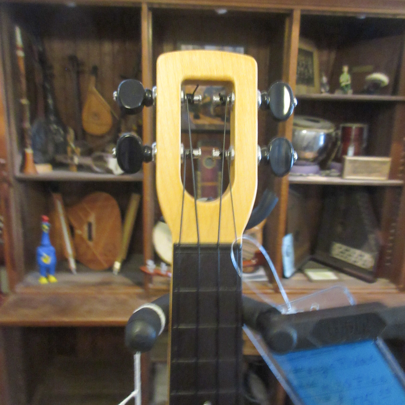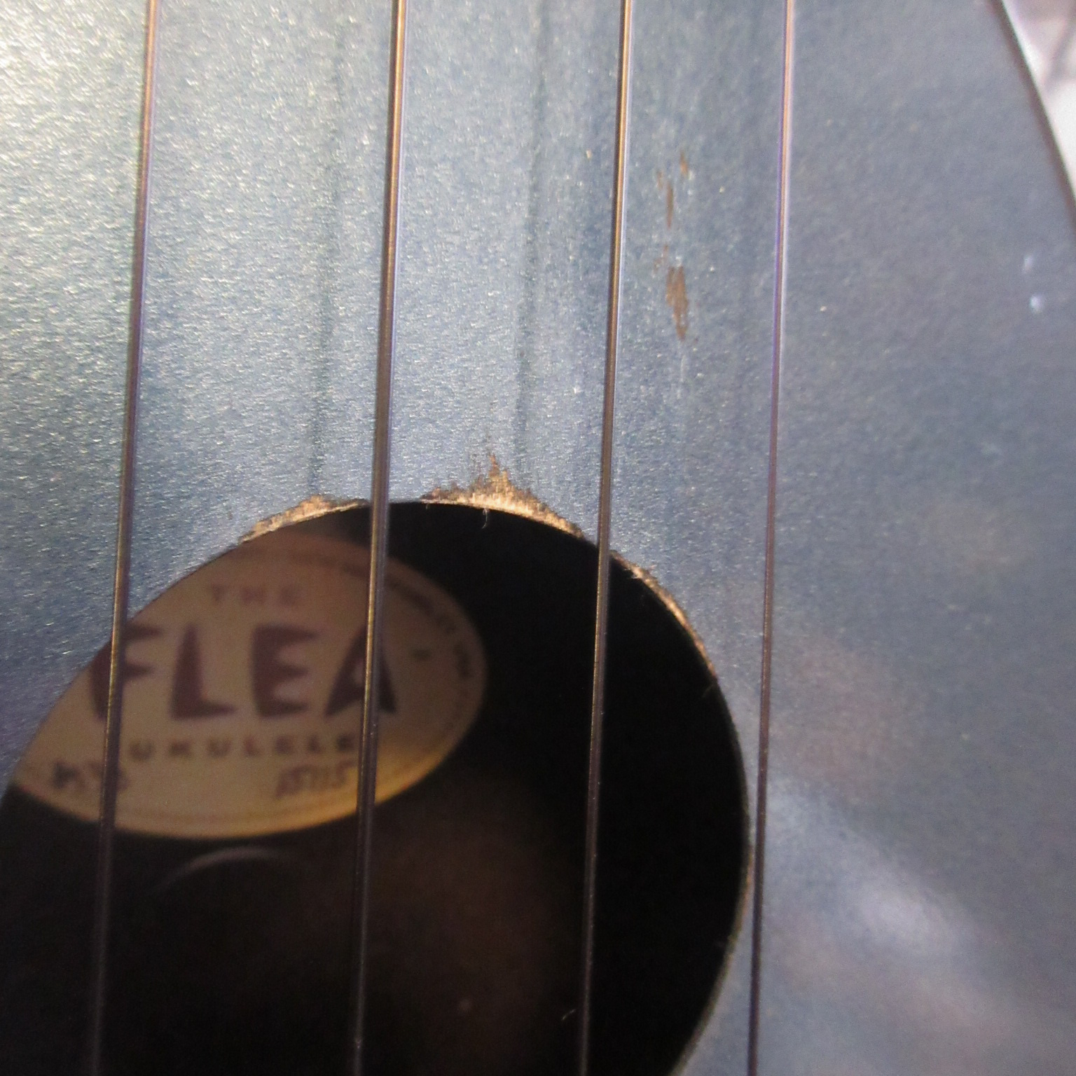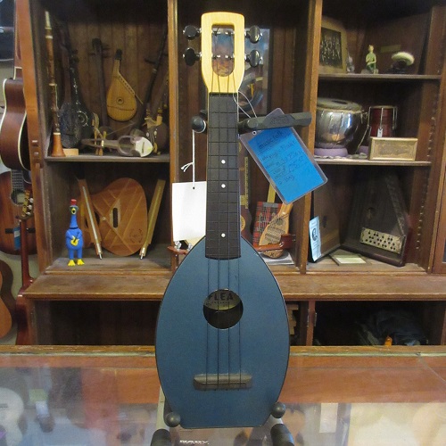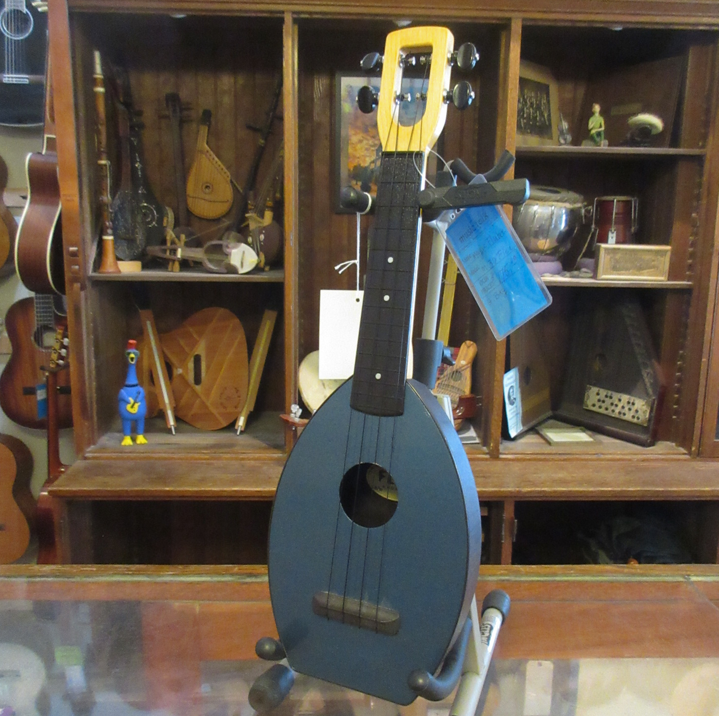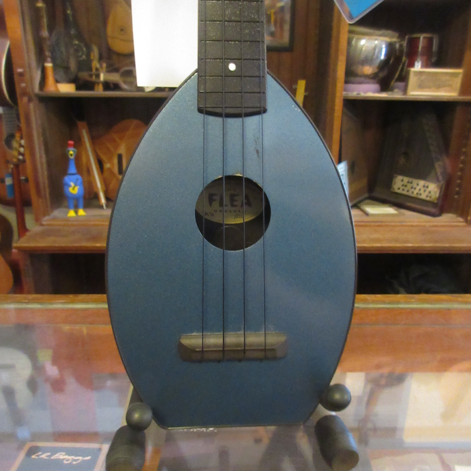 A really cool uke from the folks at Magic Fluke. The Flea has a slightly smaller body than their other ukuleles. This Flea also sports a composite fingerboard/frets and bridge. There is some light play wear to the top and a couple of marks on the body. This instrument is in very good condition overall, and comes with a gig bag. Aloha!