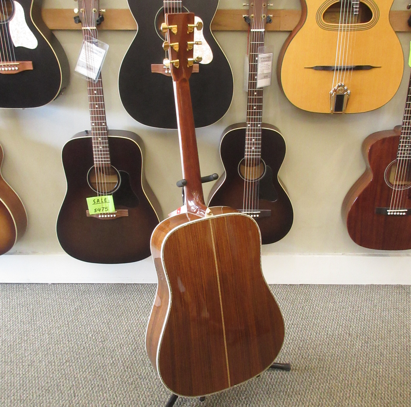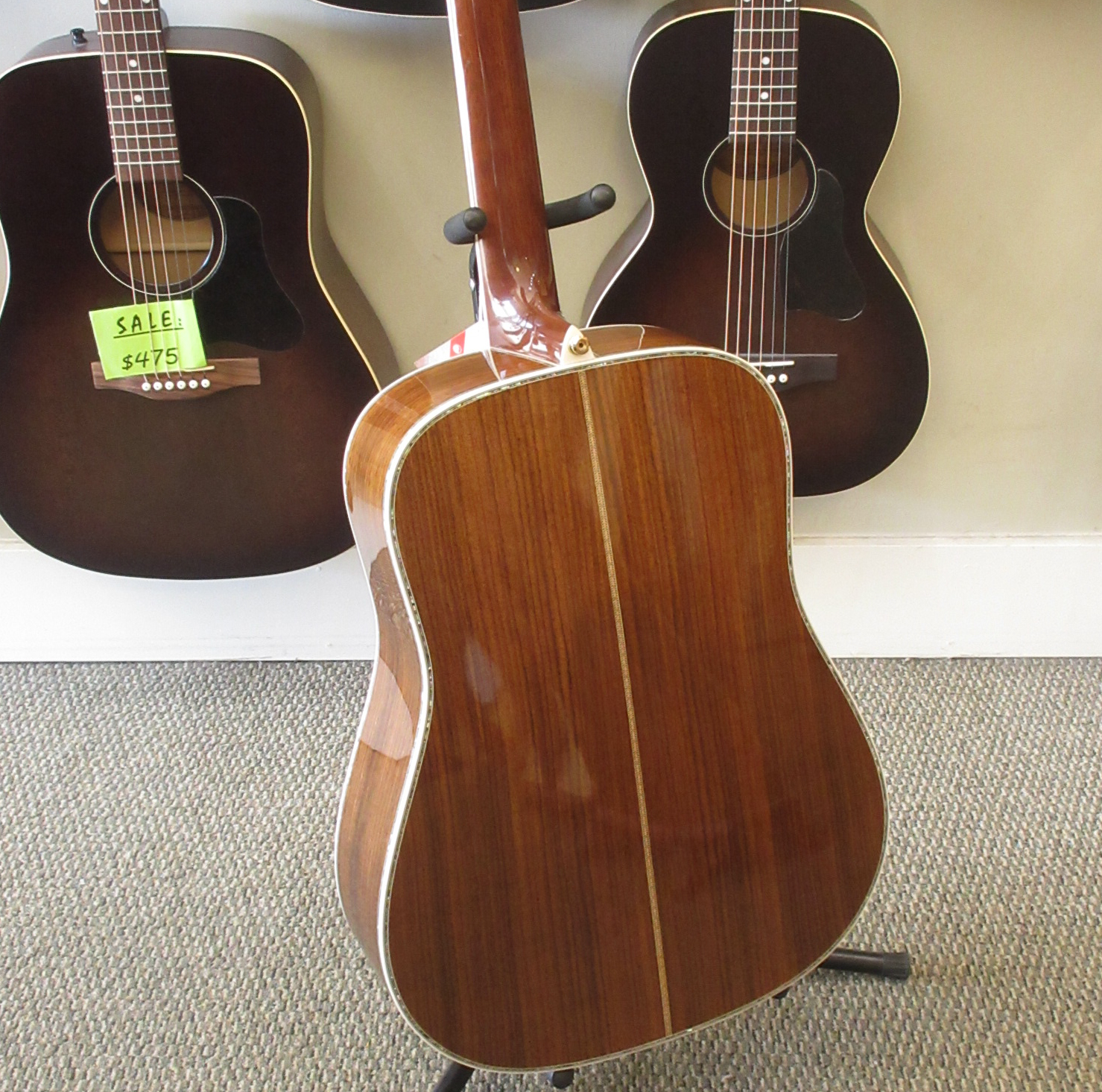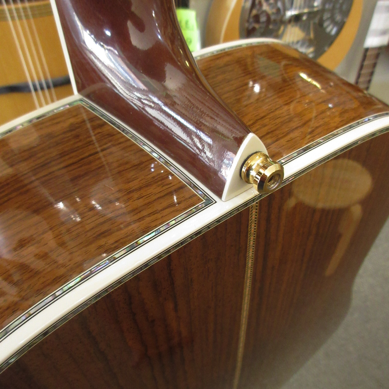 This decked out Dreadnought is the flagship model of Martin’s Standard Series. It is the most ornate of all the instruments, featuring hand inlaid pearl on the top, back, sides, and neck. Premium tonewoods and all of the advancements of the reimagined Standard Series such as forward shifted scalloped braces, antique white binding and a high performance neck. The guitar of choice for legends like Gene Autry and Neil Young, it’s the perfect guitar for any discerning collector or musician. Nothing says you’ve arrived like a D-45! We did some light setup to this and put on new strings. This instrument plays and sounds fantastic. Lots of abalone to dazzle the eyes too! A strap button has been added to the neck heel cap. A K&K passive pickup has been added for those times you wish to plug in. The guitar has mostly light wear throughout and some top indentations on it’s lower bout. In the last series of photos I tried showing them, by using reflecting light. The impressions don’t go very deep in the top and are generally hard to see, until you turn the guitar the right way. There is also some light pick scratches on the top that wouldn’t show in photos. This instrument is in very good condition overall and comes with it’s original hard case