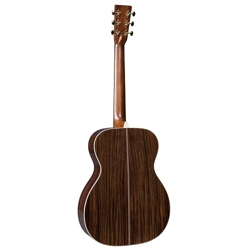 The OM-28 Modern Deluxe merges vintage Martin character with modern sophistication. A spruce VINTAGE TONE SYSTEM® (VTS) top and Golden Era–style Adirondack spruce X-bracing replicate the articulate, lively tone of a nearly century-old Martin. Natural protein glue and a lightweight carbon-fiber bridge plate enhance sustain and resonance, while exclusive Liquidmetal® bridge pins return energy for increased projection. EVO gold frets and a slightly asymmetrical neck ensure a natural feel, and European flamed-maple binding, Waverly gold open-gear tuners, and a 1933-style pearl headplate logo highlight its refined and elegant style. Fishman Aura VT electronics are installed. With a 000-sized body and longer 25.4″ scale length, this OM-28 delivers exceptional clarity, dynamic headroom, and balance—perfect for expressive players seeking heritage tone with modern precision.