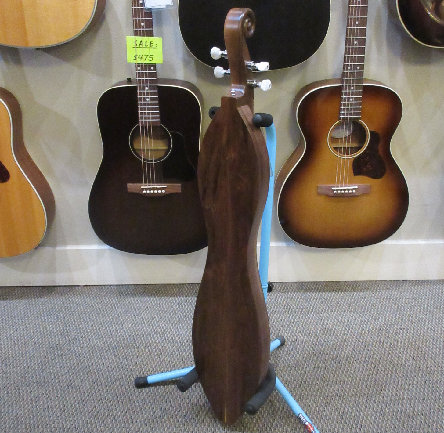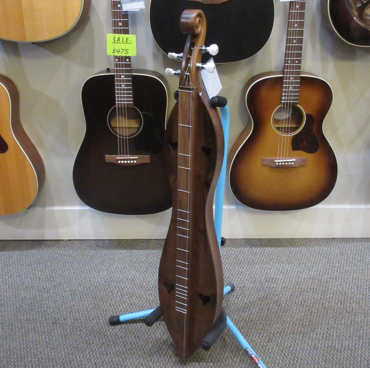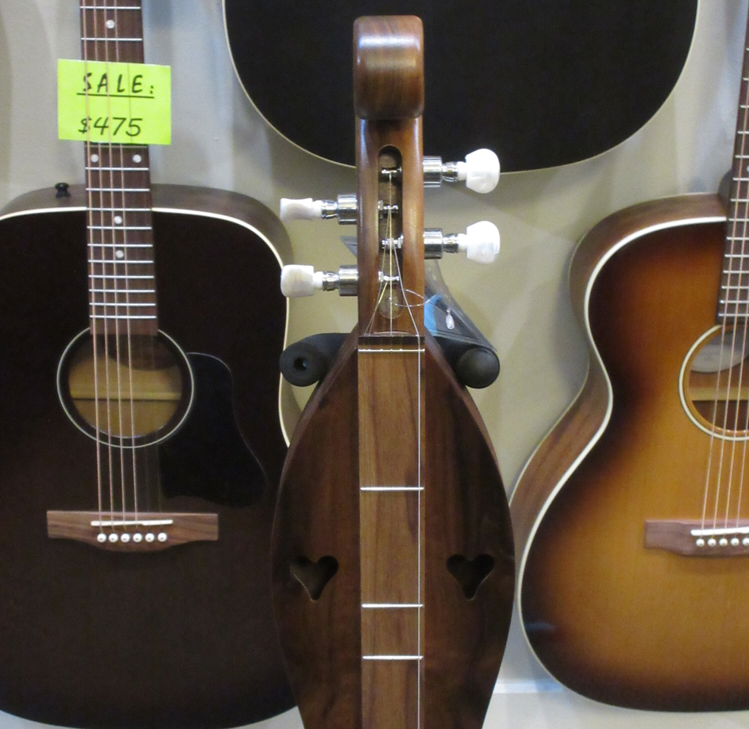 The dulcimer shown is an example of this model. These incredible handcrafted instruments are built with pride, one at a time. The natural wood retains the character making it unique and is part of the story that makes this heirloom dulcimer one of a kind. Each dulcimer is signed and numbered and comes with a gig bag.
