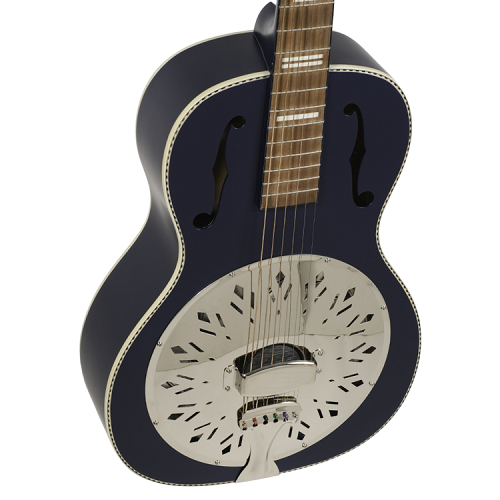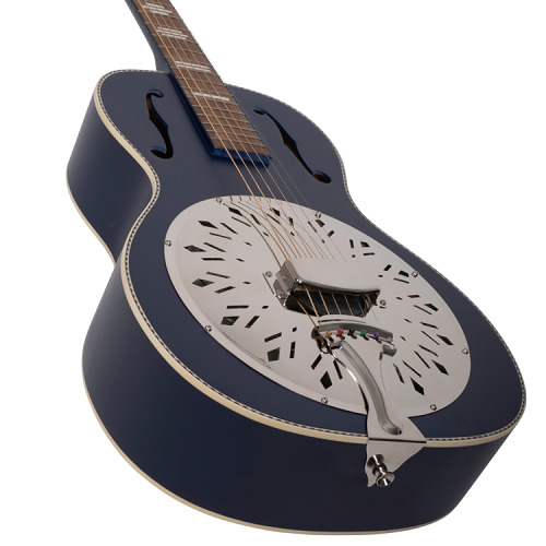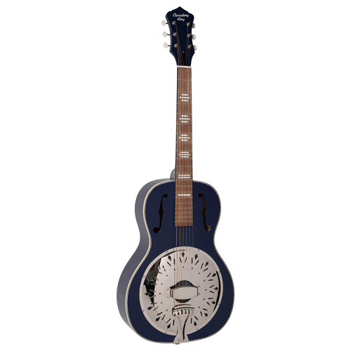 Recording King’s Dirty 30s Resonator delivers tons of classic style and a vintage resonator tone perfect for old-school blues and slide players. The single 0 size resonator drips with vibe, from the f-holes and tailpiece to the Wabash Blue finish. Traditional resonator sound is delivered from a hand-spun 9.5″ European cone in a pedestal soundwell. Soundposts support the circle of the soundwell and the cone vibrations are free to bounce within the full cavity of the body. The f-holes are placed to optimize bass and treble frequencies as they exit the body for the perfect dry, throaty resonator tone. Whether you’re a songwriter who wants vintage blues or slide sound, or a first-time player who wants something a little cooler, get traditional resonator tone in a road-worthy small body from the Recording King Dirty 30’s Resonator single 0. Recording King’s Dirty 30’s Series gives players authentic vintage style with the reliability of modern design.