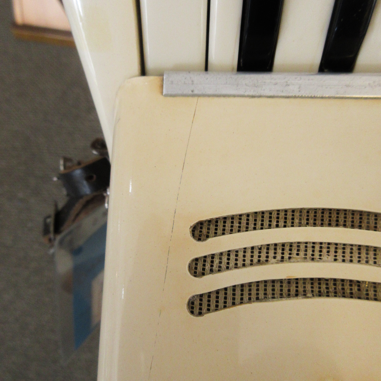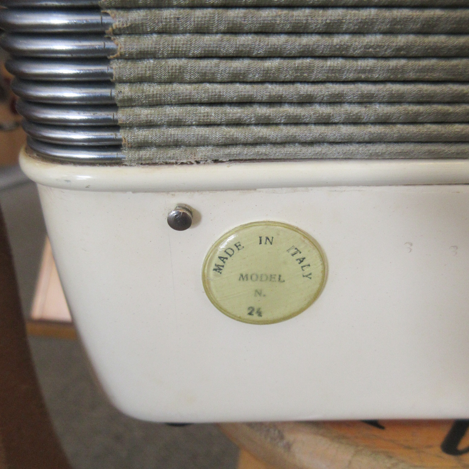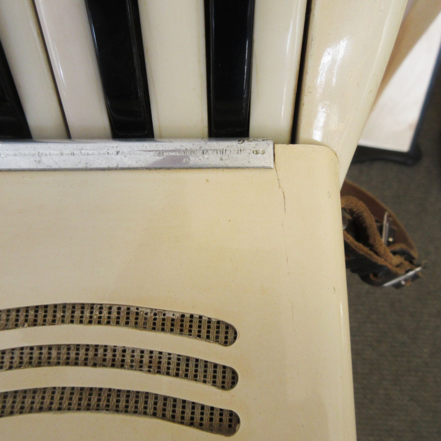A great sounding and fun playing, smaller size accordion. This Italian made instrument has an 11-inch keyboard and 12 bass buttons. This will be great for someone with smaller hands, a new student or as a “travel” instrument. Our ace reed instrument tech has been through it and made any necessary adjustments, it’s all ready to take home and play! The instrument shows light aging. There is discoloration and 2 small cracks on the plastic covering, tarnish on the metal bits, things like that. Overall, this quality instrument is in very good condition. It comes with a hard case too!