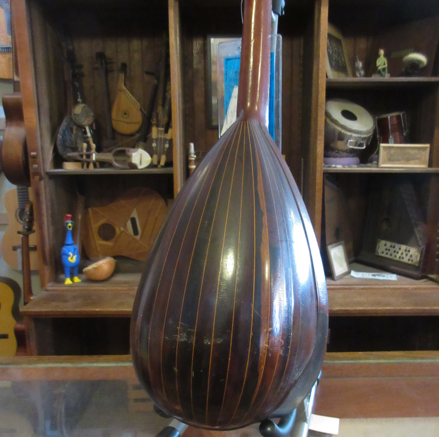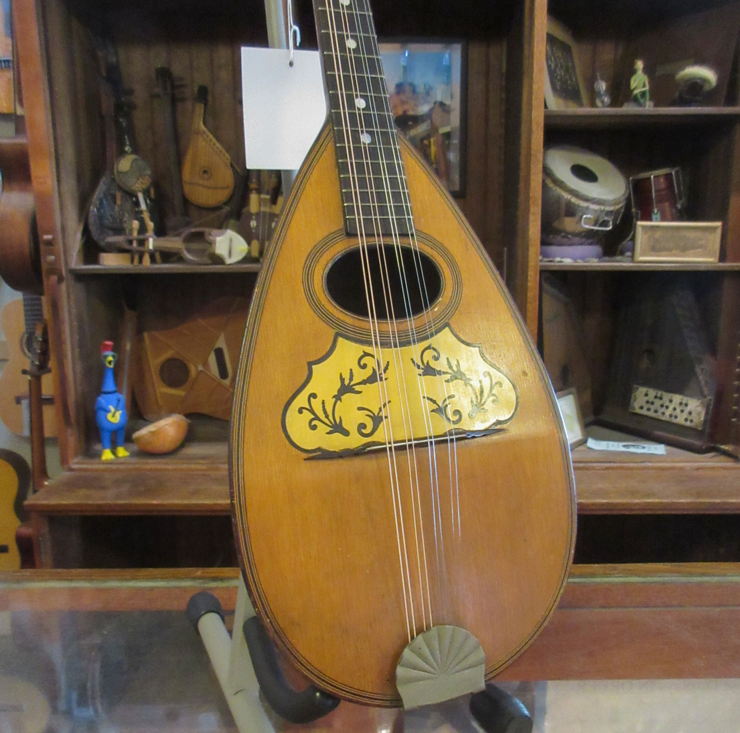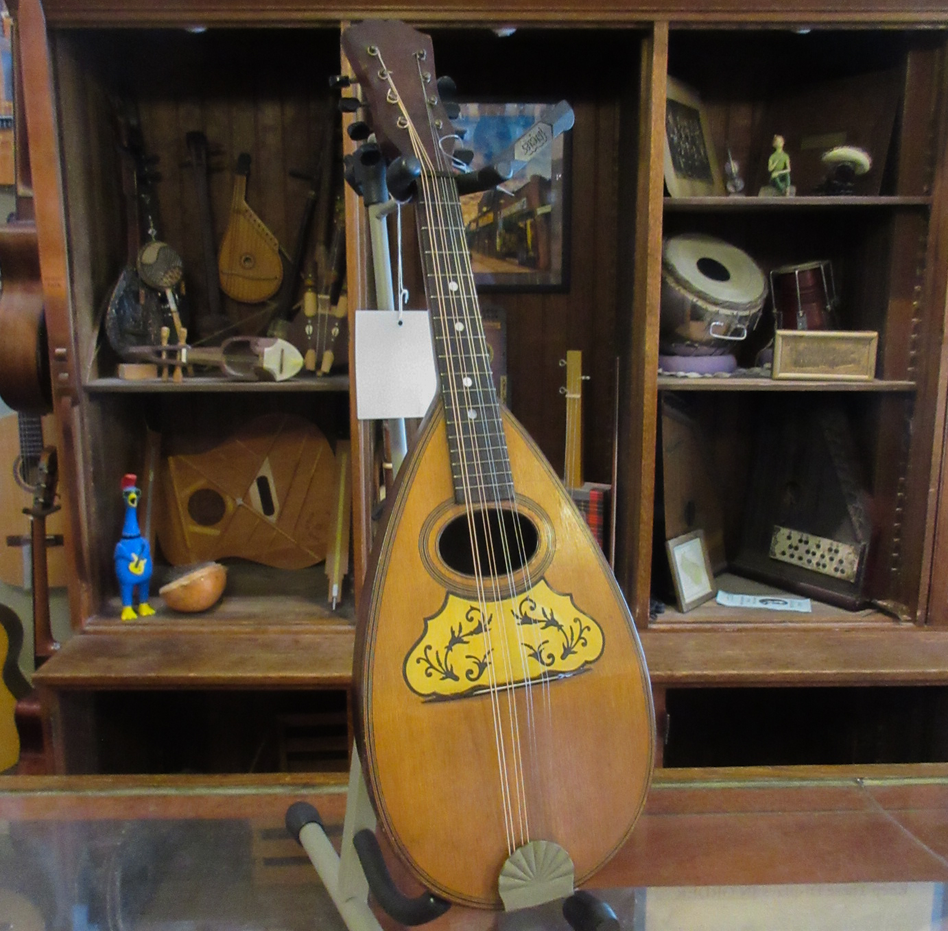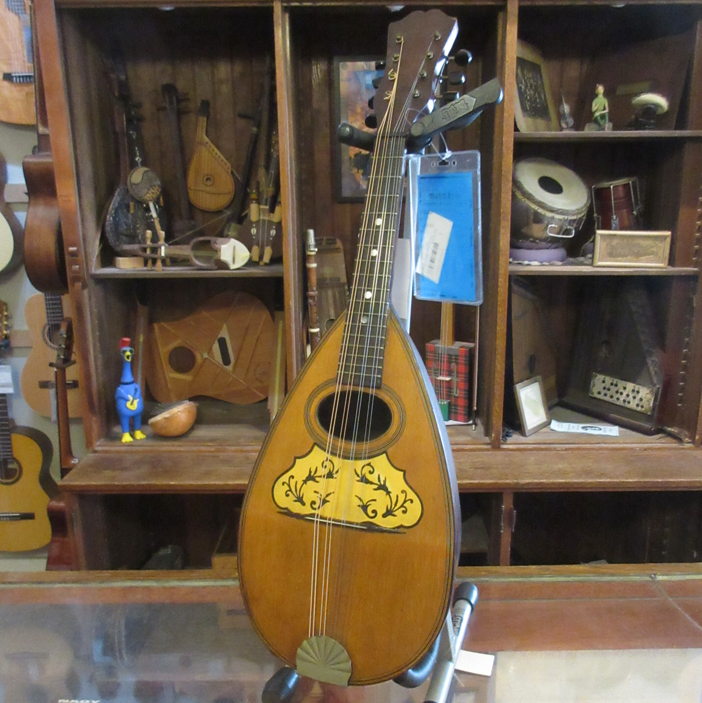 A really nice bowlback mandolin. It has no maker’s marks on it, but we can safely assume that it was made in the early part of last century. The mandolin sounds lovely and plays easily. We removed the fingerboard and planed the neck and did some other setup to it getting it ready, including putting on fresh strings. The mandolin is in great shape with mostly light wear some finish checking and some marking on the rosewood ribs. The ebony fingerboard has typical splits, which don’t affect how it plays. This instrument is in very good condition. A nice, classic piece! No case.