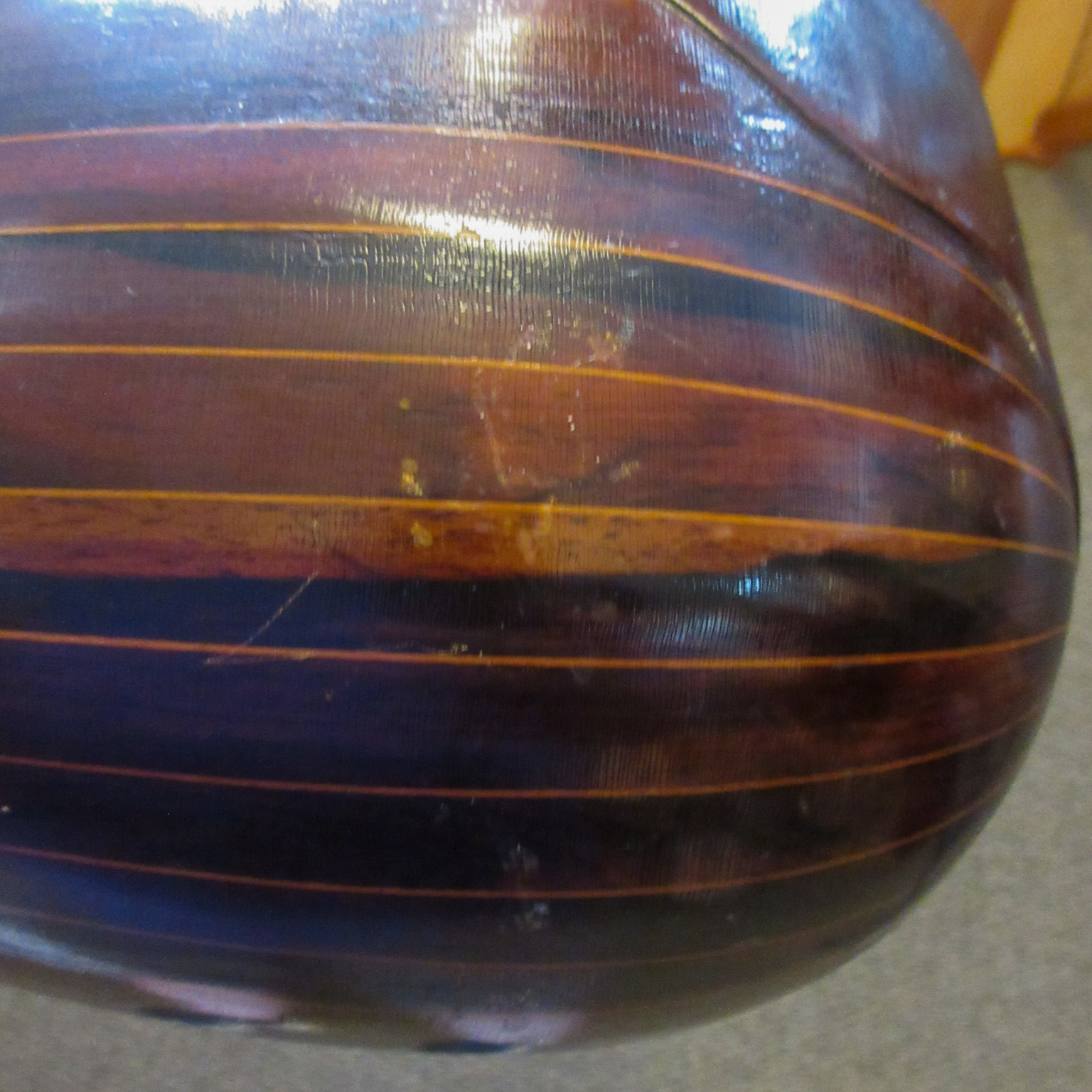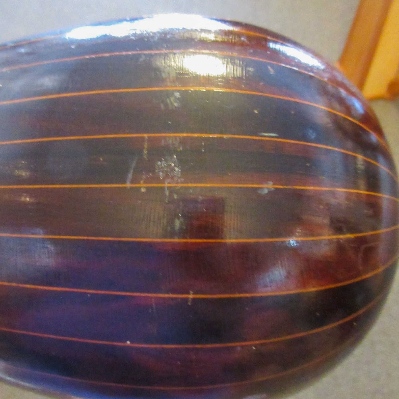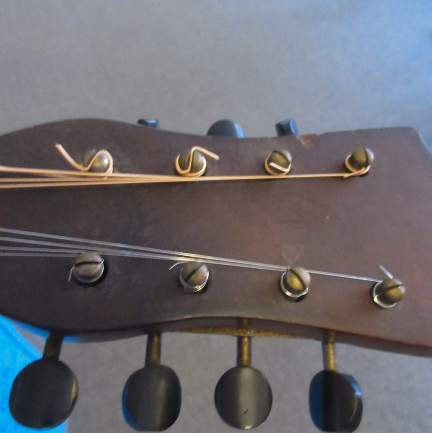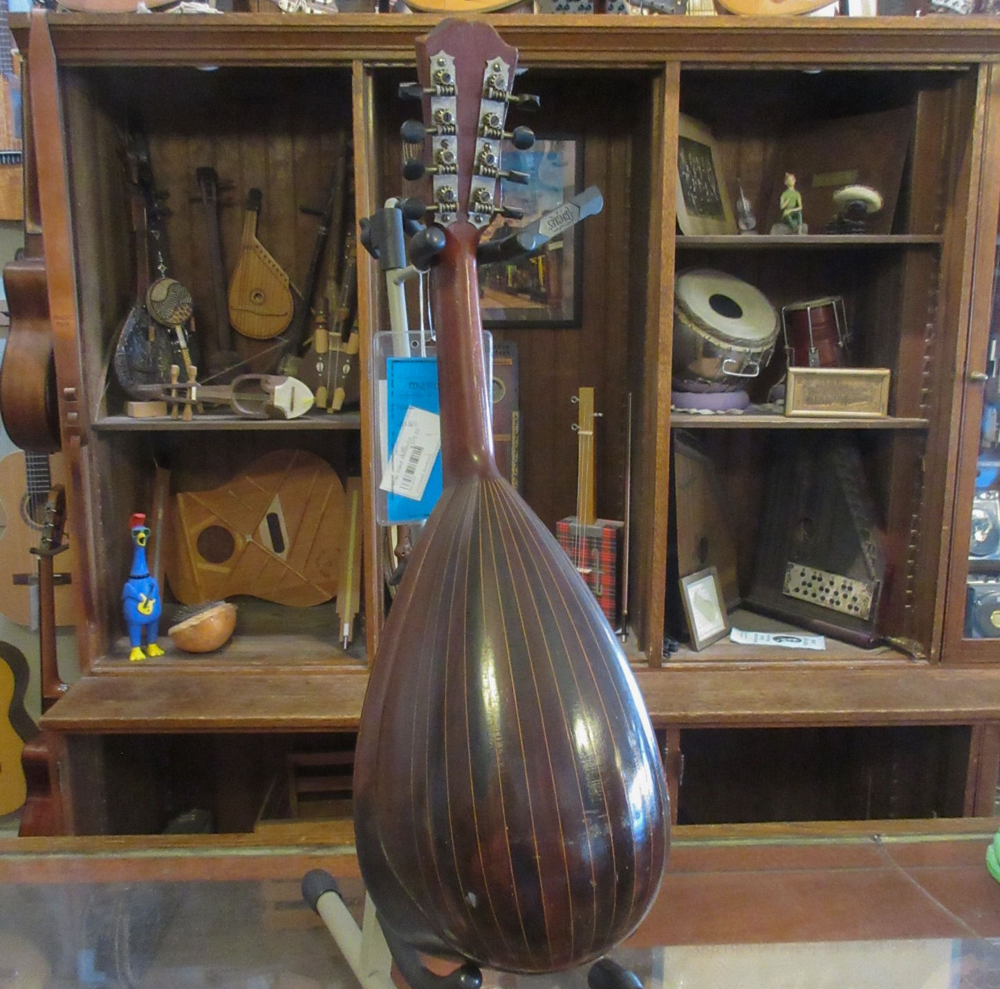 A really nice bowlback mandolin. It has no maker’s marks on it, but we can safely assume that it was made in the early part of last century. The mandolin sounds lovely and plays easily. We removed the fingerboard and planed the neck and did some other setup to it getting it ready, including putting on fresh strings. The mandolin is in great shape with mostly light wear some finish checking and some marking on the rosewood ribs. The ebony fingerboard has typical splits, which don’t affect how it plays. This instrument is in very good condition. A nice, classic piece! No case.