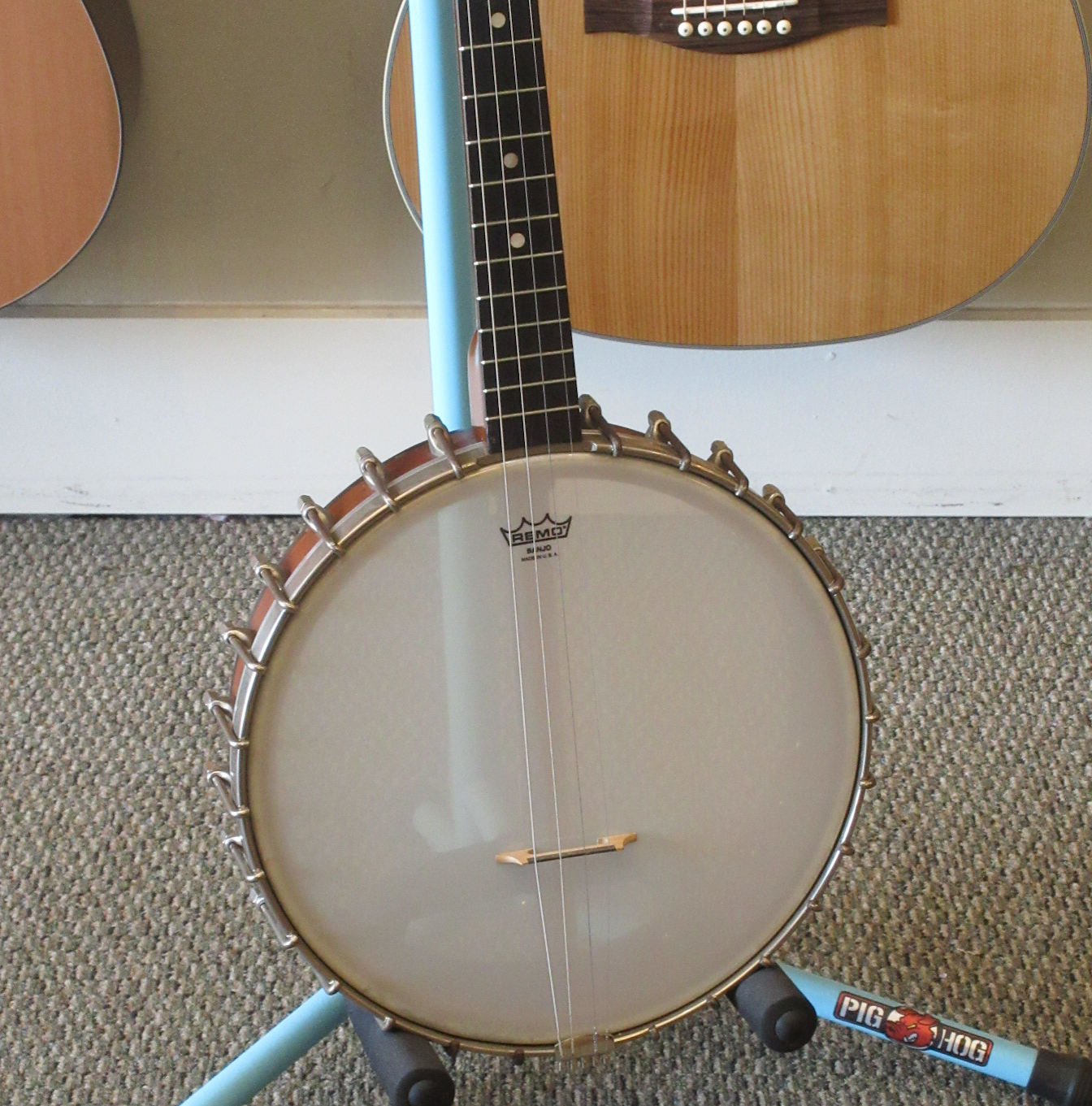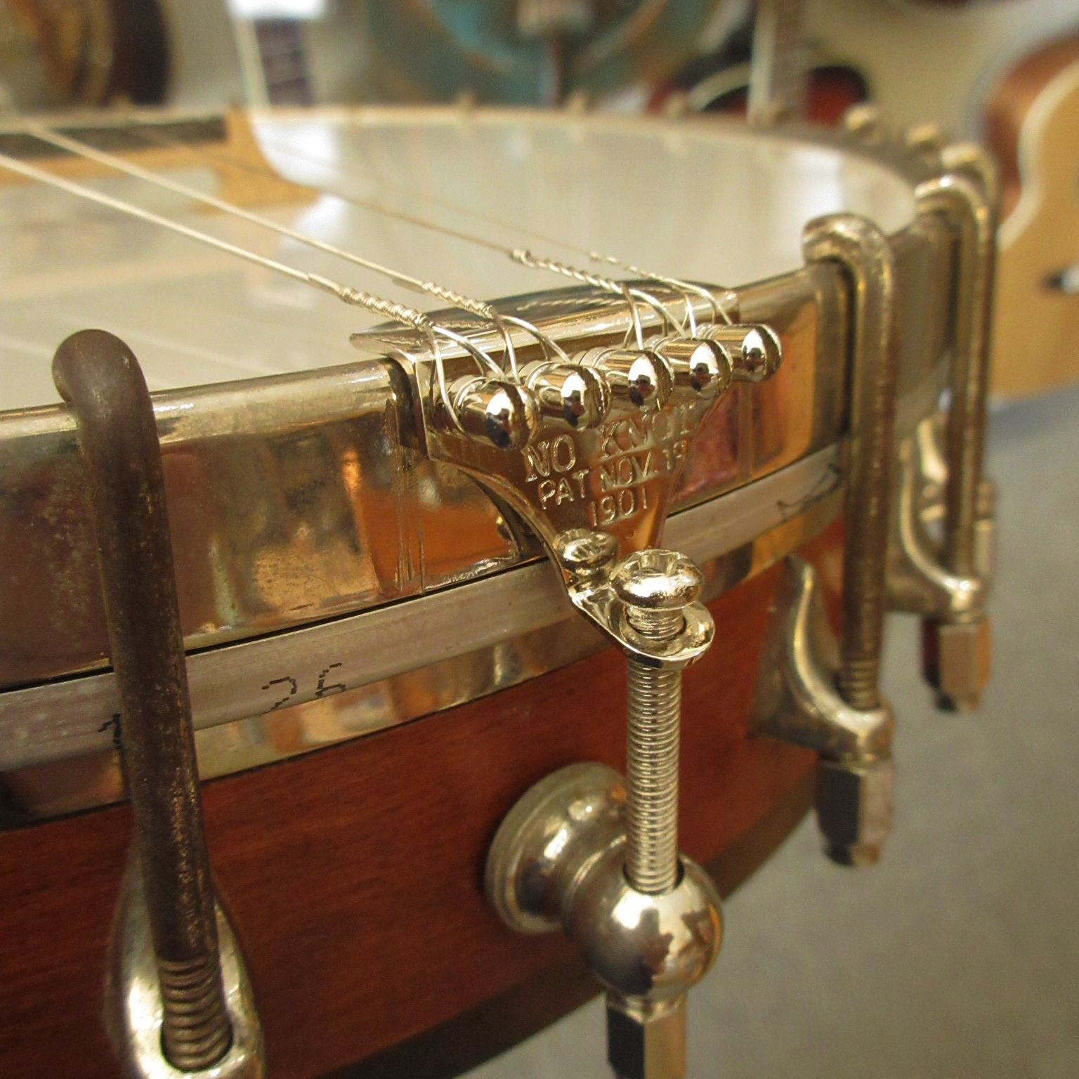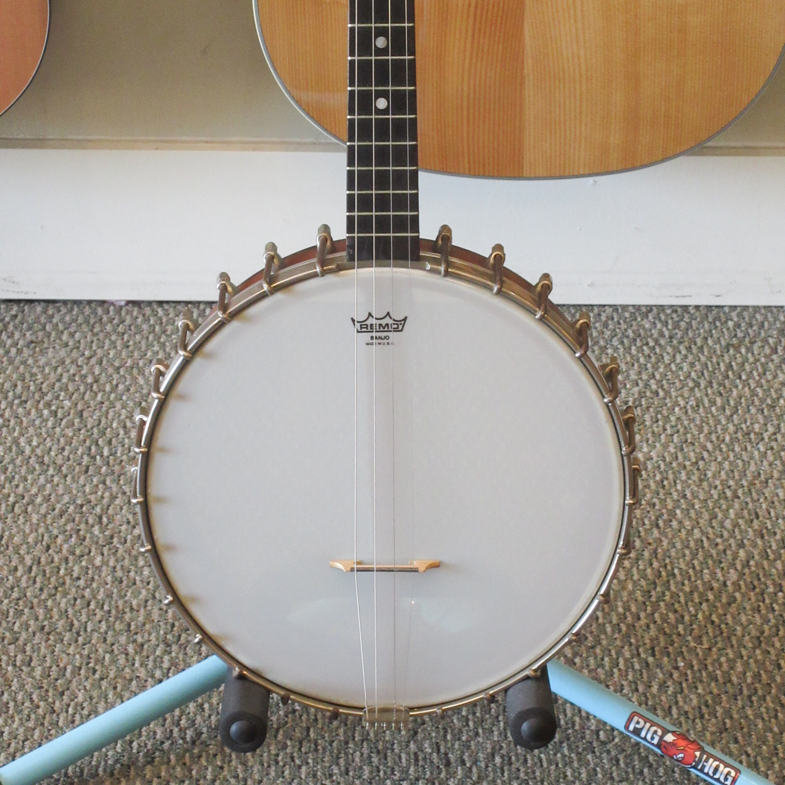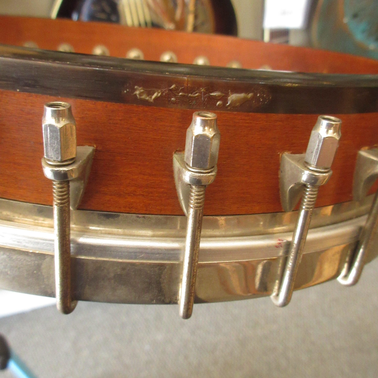 A great playing and sounding openback tenor banjo! Made by Vega in Boston, Mass. in 1925 (going by the serial number database on Deering’s site, who now owns Vega). It’s in fabulous condition for a 100 year old banjo. There are a few scratches on the headstock’s veneer some light marks here and there and a tarnish on the metal parts. The head and tailpiece are not original to the instrument. We gave this a setup and put on some fresh strings (CGDA). It has a nice tone and good projection and can get rather loud, when pushed. This is why the style-N is as popular as it is. It has a rolled brass tone ring. The original friction tuners work as they should. The banjo is in very good condition and comes with a hard case.