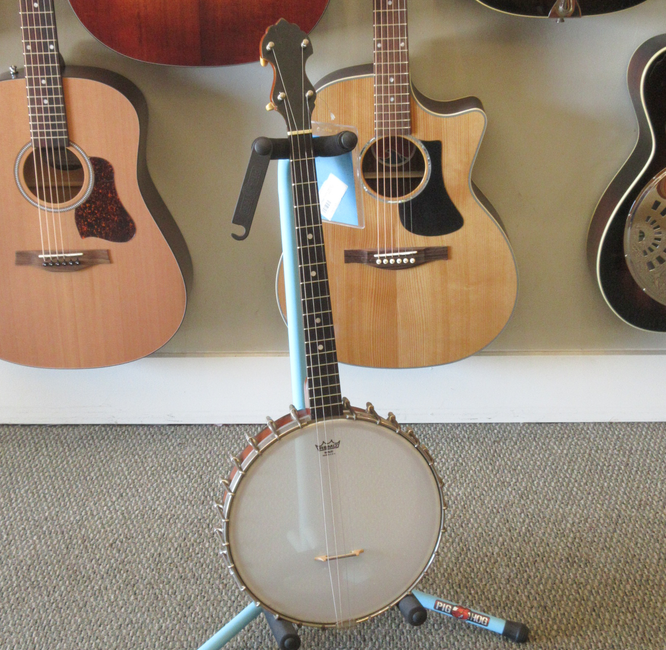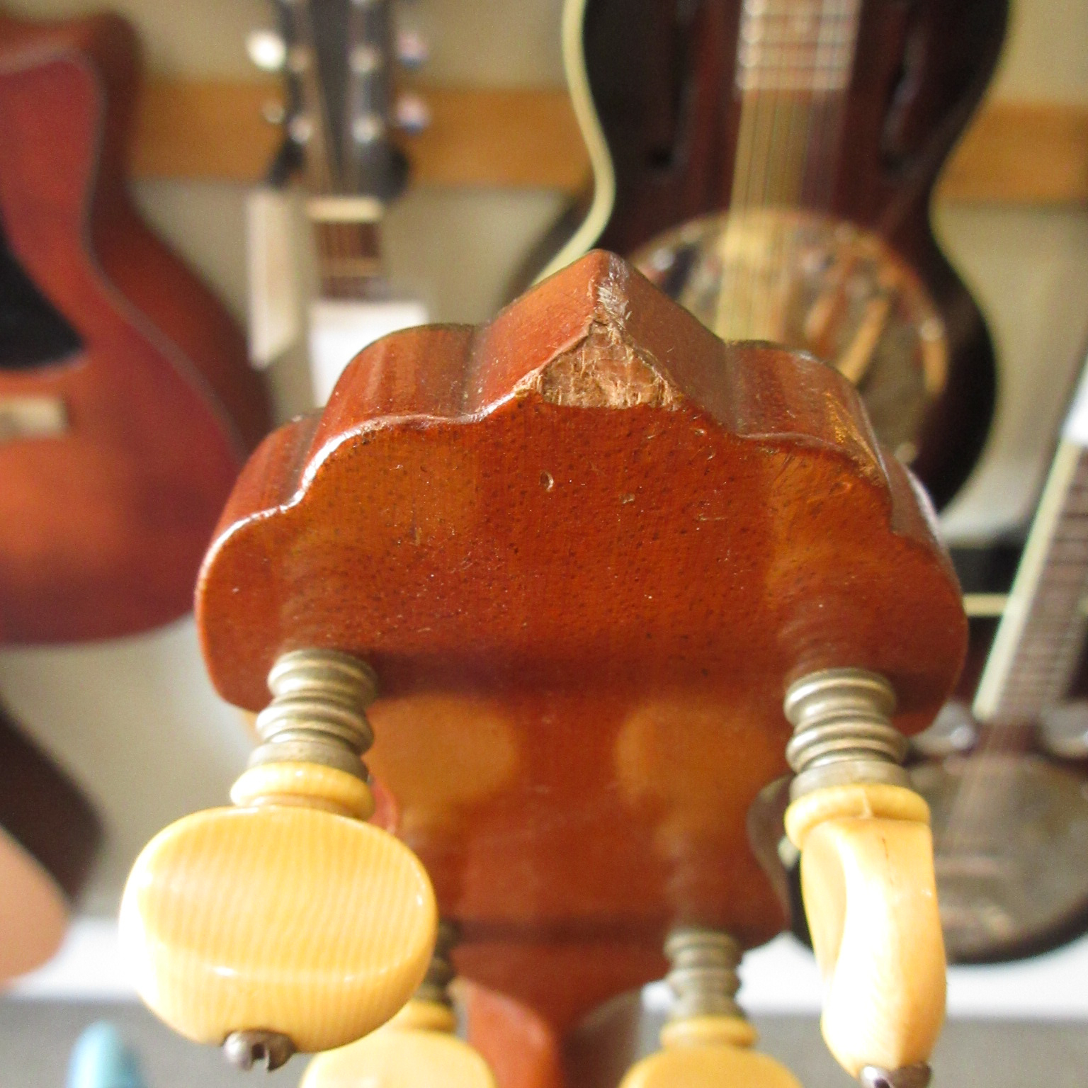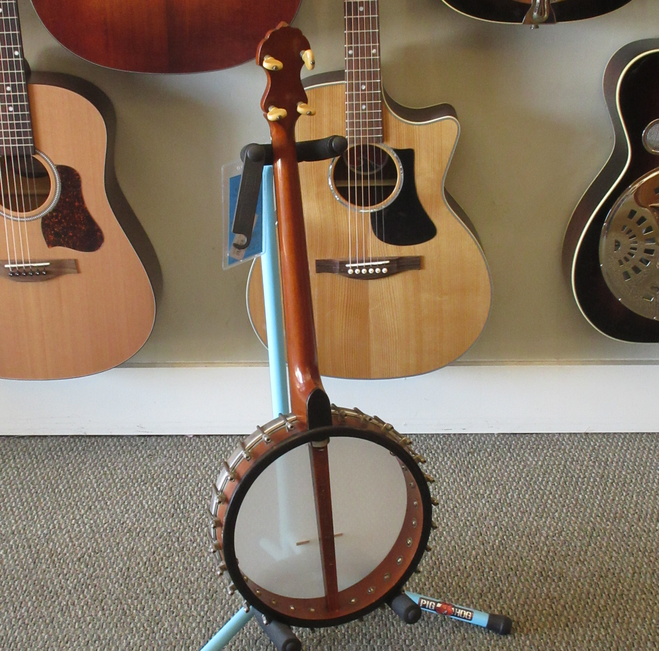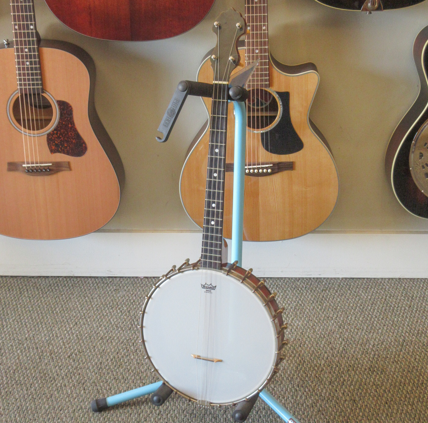 A great playing and sounding openback tenor banjo! Made by Vega in Boston, Mass. in 1925 (going by the serial number database on Deering’s site, who now owns Vega). It’s in fabulous condition for a 100 year old banjo. There are a few scratches on the headstock’s veneer some light marks here and there and a tarnish on the metal parts. The head and tailpiece are not original to the instrument. We gave this a setup and put on some fresh strings (CGDA). It has a nice tone and good projection and can get rather loud, when pushed. This is why the style-N is as popular as it is. It has a rolled brass tone ring. The original friction tuners work as they should. The banjo is in very good condition and comes with a hard case.